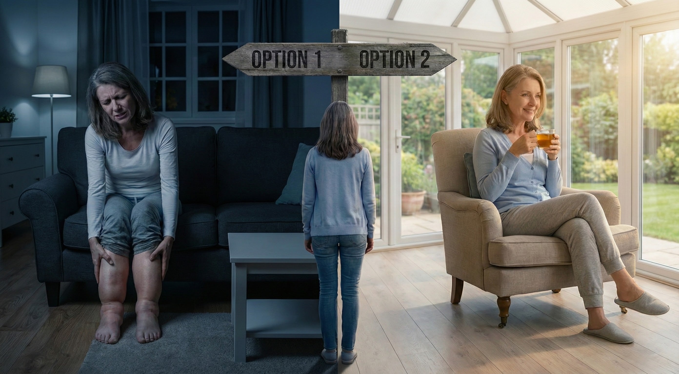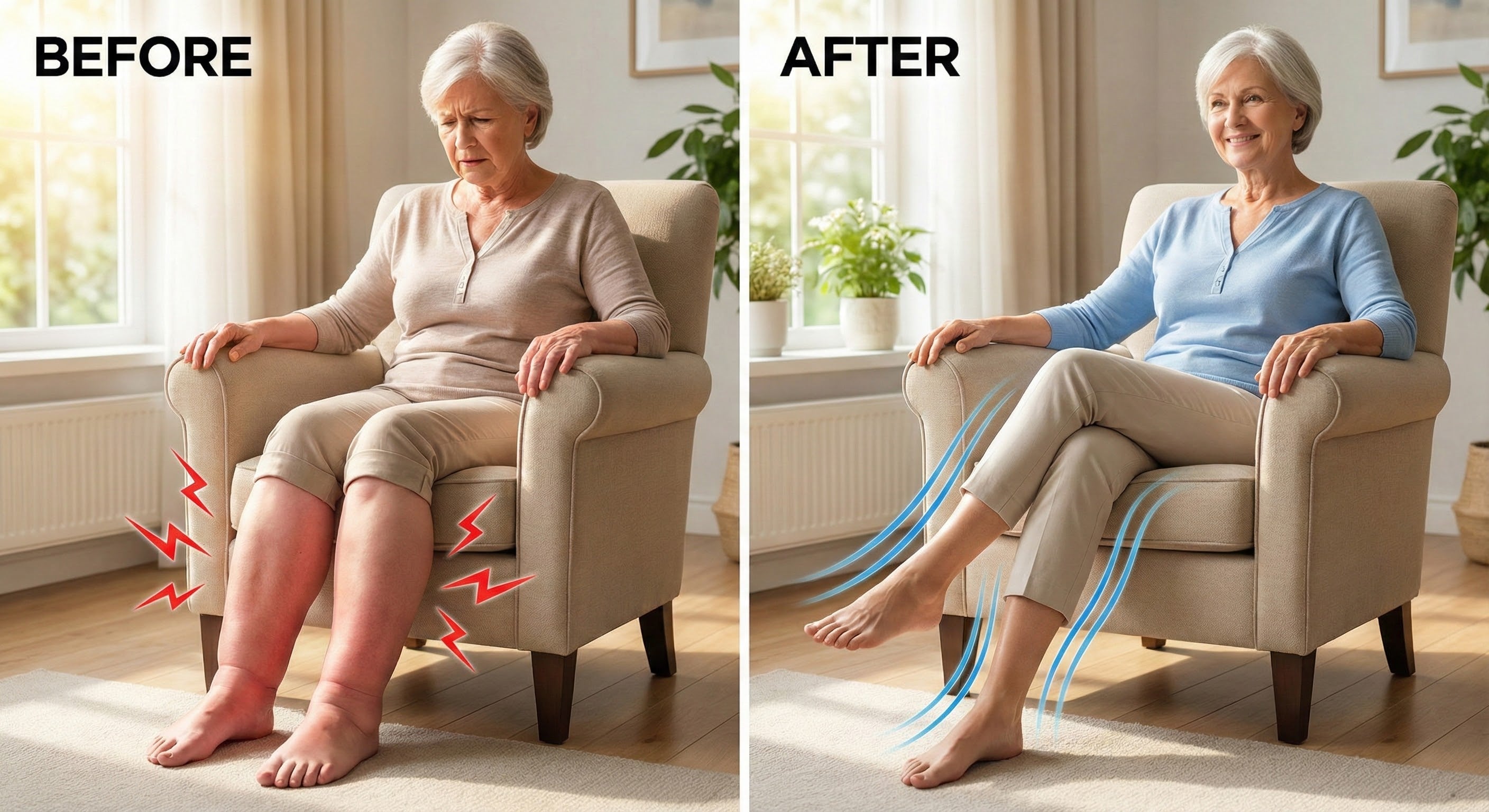 They apply external pressure to force fluid up. But they're uncomfortable, cut off circulation at the knee, rub your skin raw, and the moment you take them off, the swelling returns within 2-3 hours because your muscle pump is still dormant.
